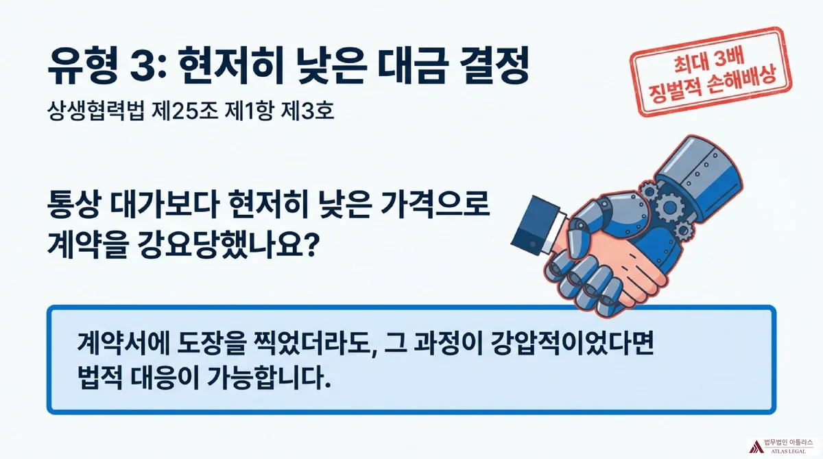 | 제3호 | 통상적으로 지급되는 대가보다 현저히 낮은 가격으로 납품대금을 정하는 행위 | 3배 이내 징벌적 손해배상 (제40조의2 제2항 제1호) |