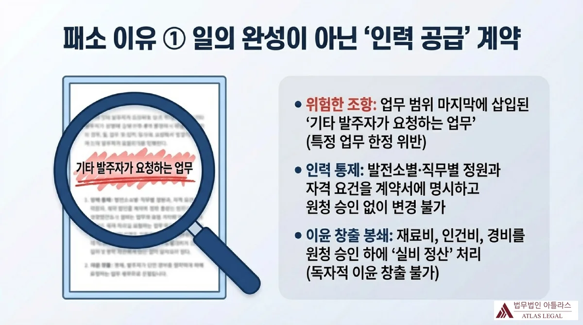 패소 이유 ① 인력 공급 성격의 계약 구조