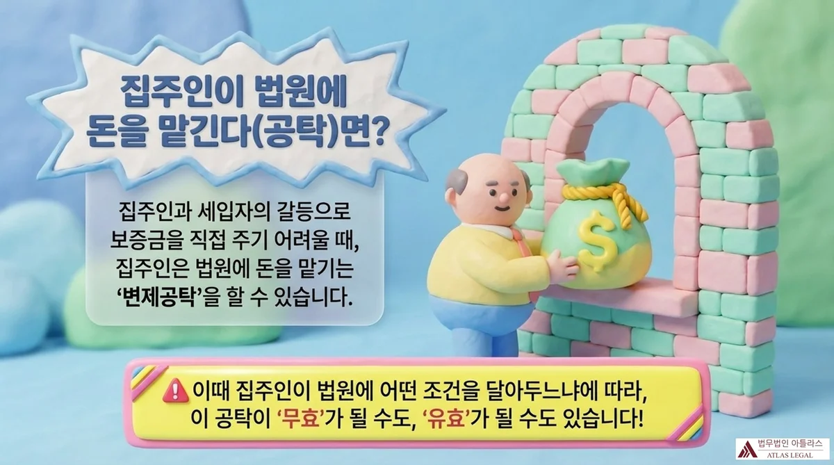 인천지방법원 2019가단272304 판결(2020. 12. 17. 선고)은 이 문제를 정면으로 다루었습니다. 이 사건에서 임대인 X는 임차인 Y와의 조정 과정에서 보증금 반환의무와 건물 인도의무 및 임차권등기 말소의무를 동시이행하기로 하였고, 이후 X는 “건물 인도 및 임차권등기 말소”를 반대급부조건으로 하여 보증금을 공탁하였습니다. 법원은 이 공탁이 유효하다고 판단하였습니다.