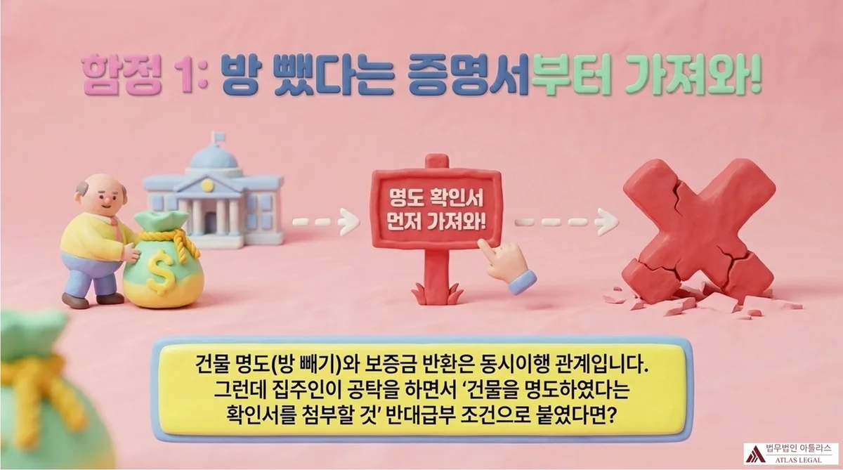 이 차이는 미묘하지만 결정적입니다. “앞으로 건물을 인도할 것”을 조건으로 하면 유효하지만, “이미 건물을 인도하였다는 확인서”를 요구하는 것은 임차인에게 선이행을 강요하는 것이 되어 무효가 됩니다.
