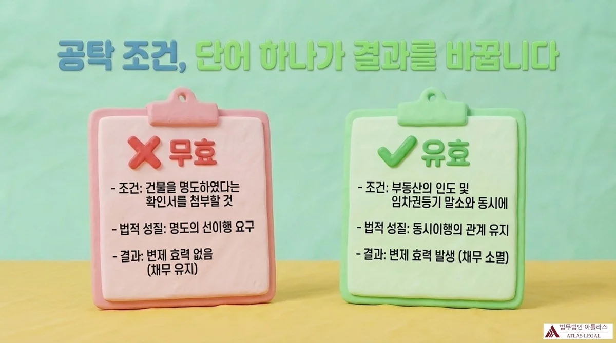 유효한 반대급부조건부 변제공탁의 핵심은, 공탁 조건으로 설정하는 내용이 실제로 동시이행 관계에 있는 의무여야 하며, 임차인의 선이행을 요구하는 내용이 아니어야 한다는 점입니다.