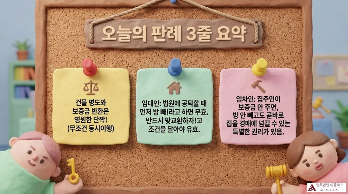 담당 변호사팀이 건설·부동산 및 임대차 분쟁 사건에서 축적한 경험에 따르면, 동시이행판결 직후 신속히 변제공탁과 명도 강제집행 절차를 진행하는 것이 불필요한 분쟁과 비용을 막는 가장 효율적인 방법입니다. 법무법인 아틀라스는 이러한 임대차 분쟁의 사후 집행 단계에서도 의뢰인의 권리를 신속하게 실현하는 데 집중합니다.