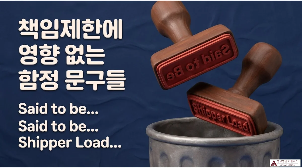 선하증권에 ‘Said to Contain’ 또는 ‘Said to Be'(…이 들어 있다고 함 또는 …라고 함)와 같은 유보문구가 기재되어 있어도 포장당 책임제한조항의 해석에 있어서 아무런 영향이 없습니다(대법원 2004. 7. 22. 선고 2002다44267 판결). 이 유보문구는 운송인이 컨테이너 내용물을 직접 확인하지 않았음을 나타내는 것으로, 책임제한 계산단위의 결정과는 별개의 문제입니다.