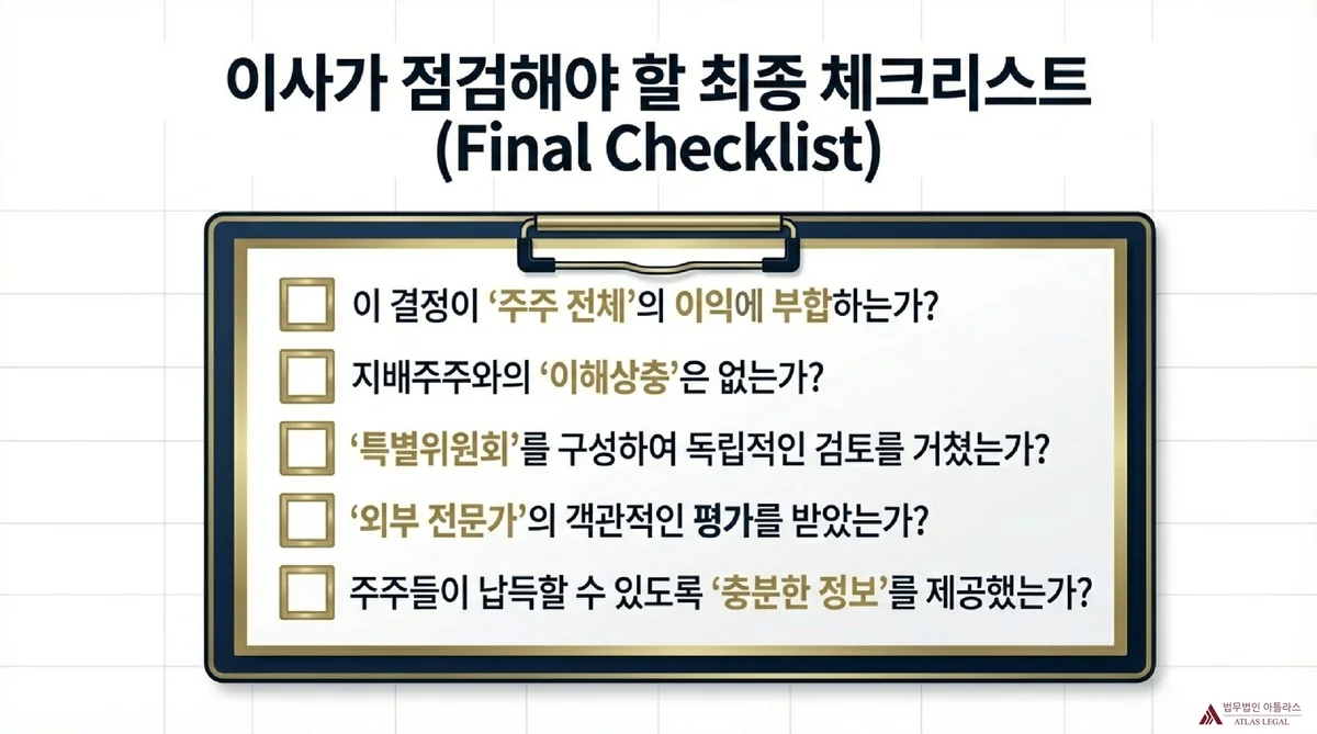 그러나 실무적으로는 중요한 의미가 있습니다. 이사가 가이드라인이 제시하는 사항을 따른다면 주주보호 노력 및 거래의 공정성에 대한 신뢰가 높아질 수 있고, 소송이나 분쟁 발생 시 이사의 선의(good faith)를 입증하는 유력한 자료가 될 수 있습니다.
