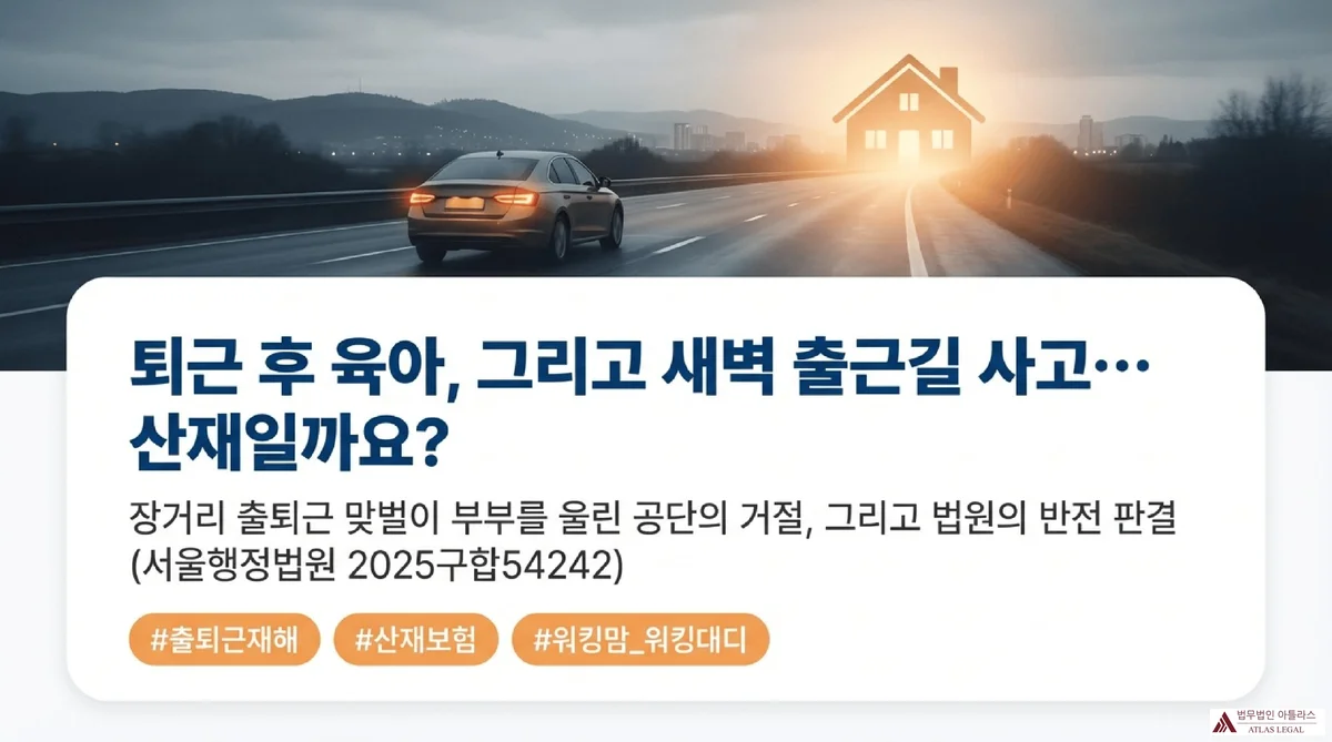 실제 사례: 충북 음성의 건설현장에서 일하던 안전관리자가 퇴근 후 평택 자택에서 두 어린 자녀를 돌보고, 다음 날 새벽 5시 조기출근을 위해 밤 8시 20분 자택을 나섰다가 고속도로에서 교통사고로 사망했다. 근로복지공단은 출퇴근 경로를 벗어난 사고라며 유족급여 지급을 거부했다. 이 사고는 산재로 인정받을 수 있을까?