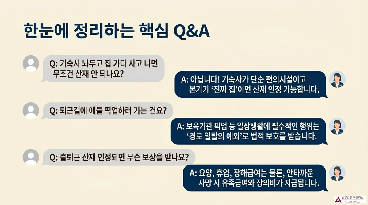 퇴근 후 자택에서 육아하다 기숙사로 복귀하던 중 사고도 산재인가요? 출퇴근 재해 판단 기준 실무 해설