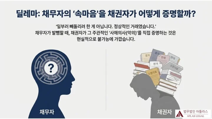 채무자의 주관적 사해의사를 직접 증명하기는 현실적으로 거의 불가능합니다.