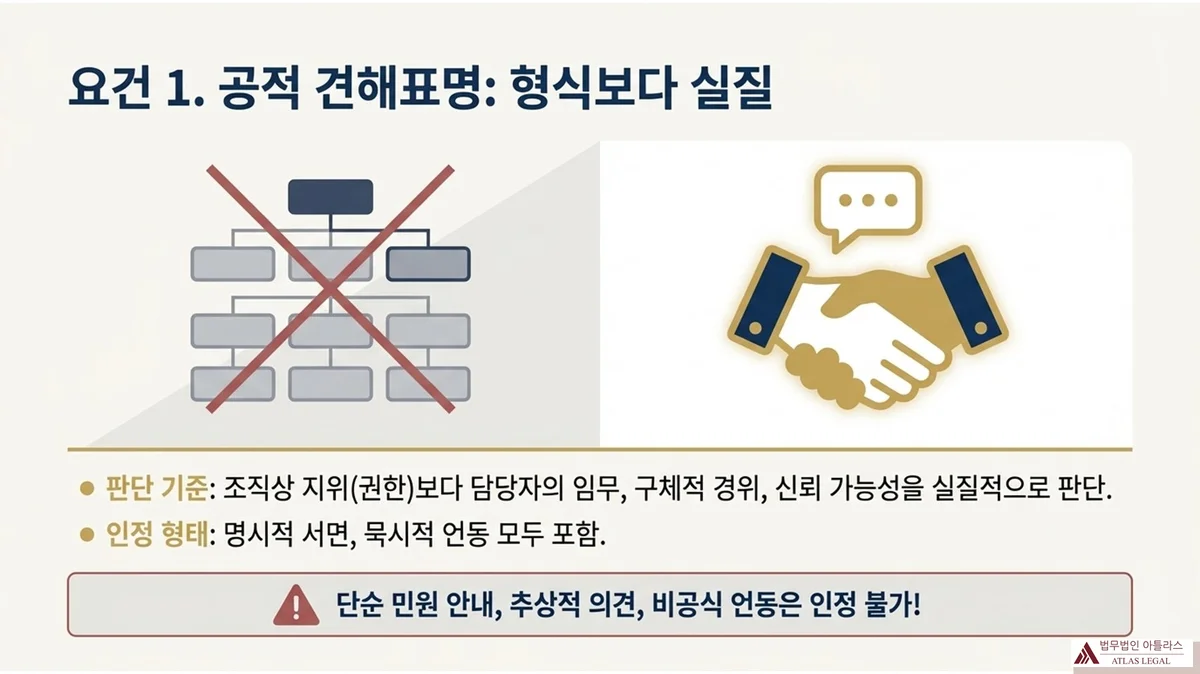 2. 요건 1 — 공적 견해표명이란 어떤 것인가요?