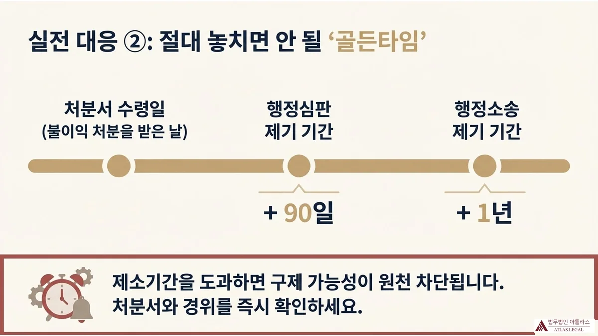 행정청이 이후 처분을 변경하거나 거부하는 경우, 그 처분서와 처분 경위를 확인하고 처분서 수령일로부터 행정심판(90일)·행정소송(1년) 제기 기간을 반드시 확인해야 합니다. 제소기간을 도과하면 구제 가능성이 크게 줄어들기 때문입니다.